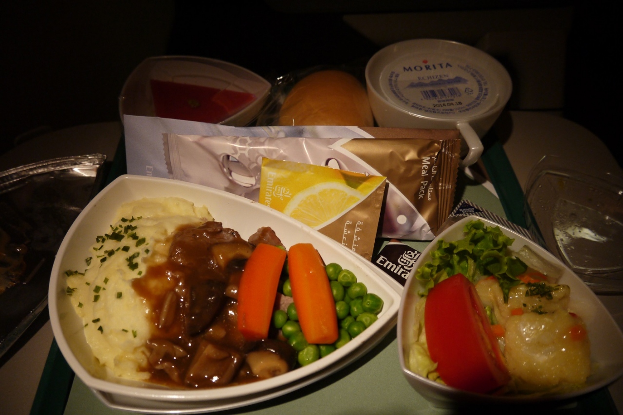 機内食も普通においしく、心配していたドバイ出発の機内食もアラビア風の朝食がなかなか良かったです。