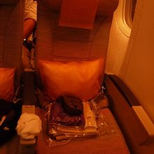 行きはチェックインの時に非常口前の席に変更してくれたので足元が広く楽々でした。