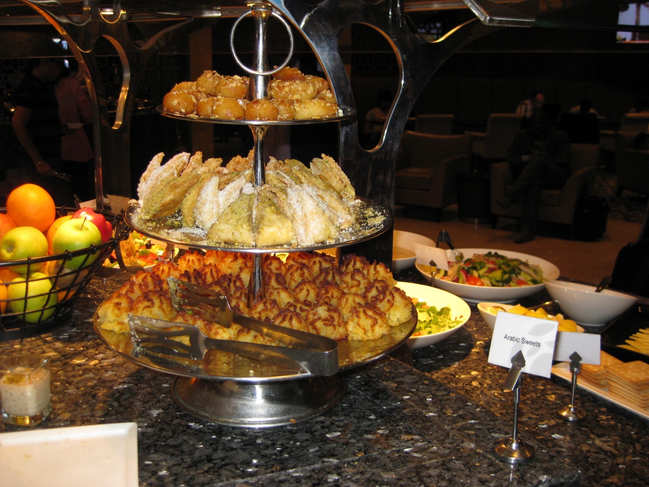 安いビジネスクラスのオファーがきたので、搭乗する6ヶ月以上前に最終目的地を決めずにフランクフルトまでのチケットを買った。私は使わなかったが、フランクフルトではリムジン・サービスまでついていた。アブダビ空港で乗り継ぐのだが、時間はたっぷり、ラウンジも広大で妻はシャワーを浴びた。トイレには係員が常駐していて、使用後の清掃・確認を行っていた。フランクフルト空港にも専用のラウンジがあり、1日1本のしかないのに、立派な設備で、飲食物もホステスが注文をとり、運んでくれる。膝をついてのサービスでアラブの王族になったような気分。食事を含めてエキゾチックな感じが強く中東のエアラインもなかなかよいと思った。
