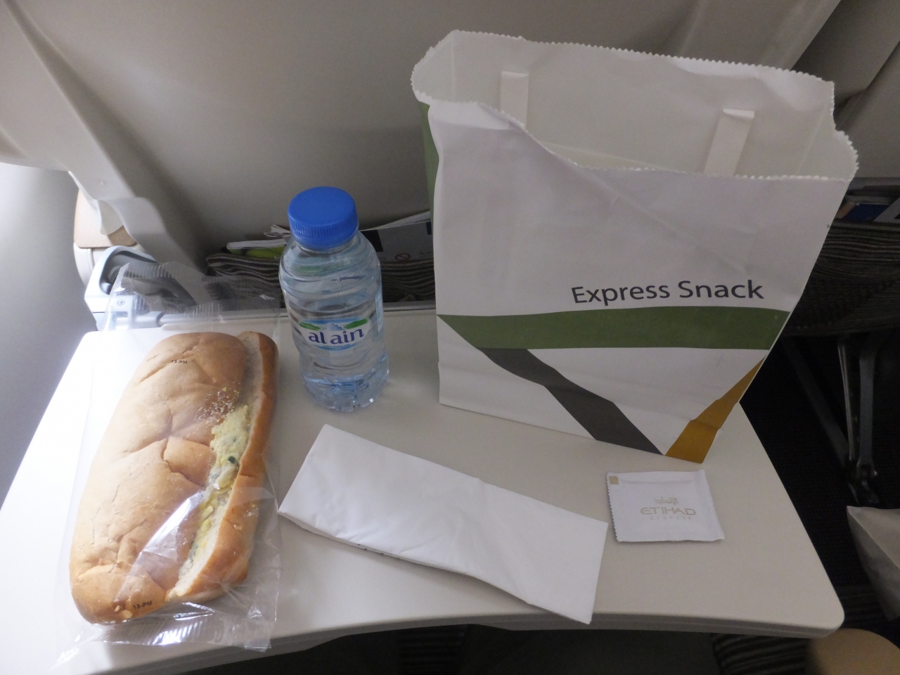 機内食はエッグサンドイッチとミネラルウォーターのみ。