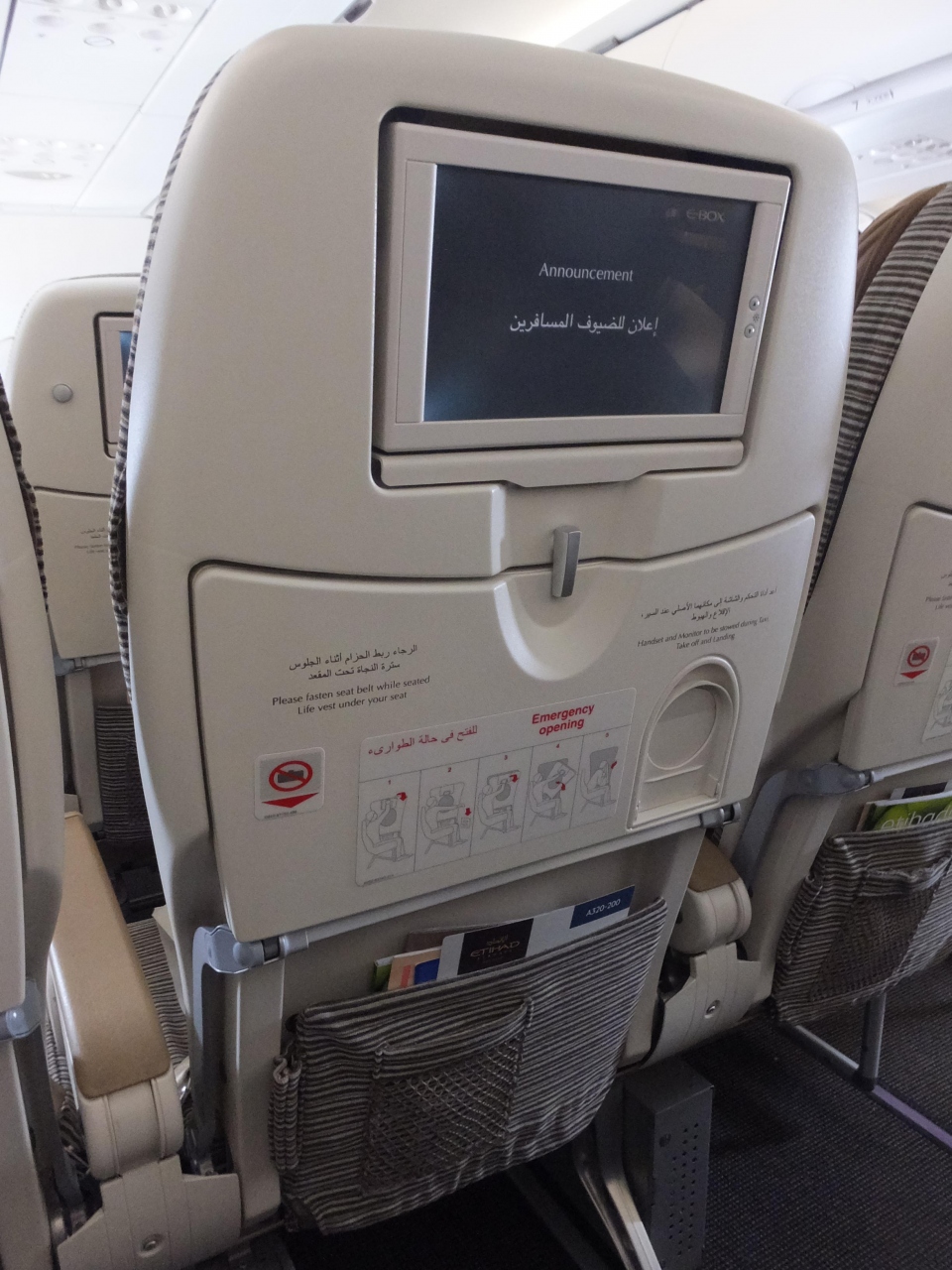 新しい機材でパーソナルモニター付き(A320)。空席が多い。