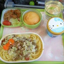 福岡から台湾へ行きました。行きはすべてキティちゃん仕様になっていました。テレビの画面からクッション、アイスまでキティちゃんです。機内食はおいしかったです。2時間弱でつきました。テレビで最新の映画などが見れます。