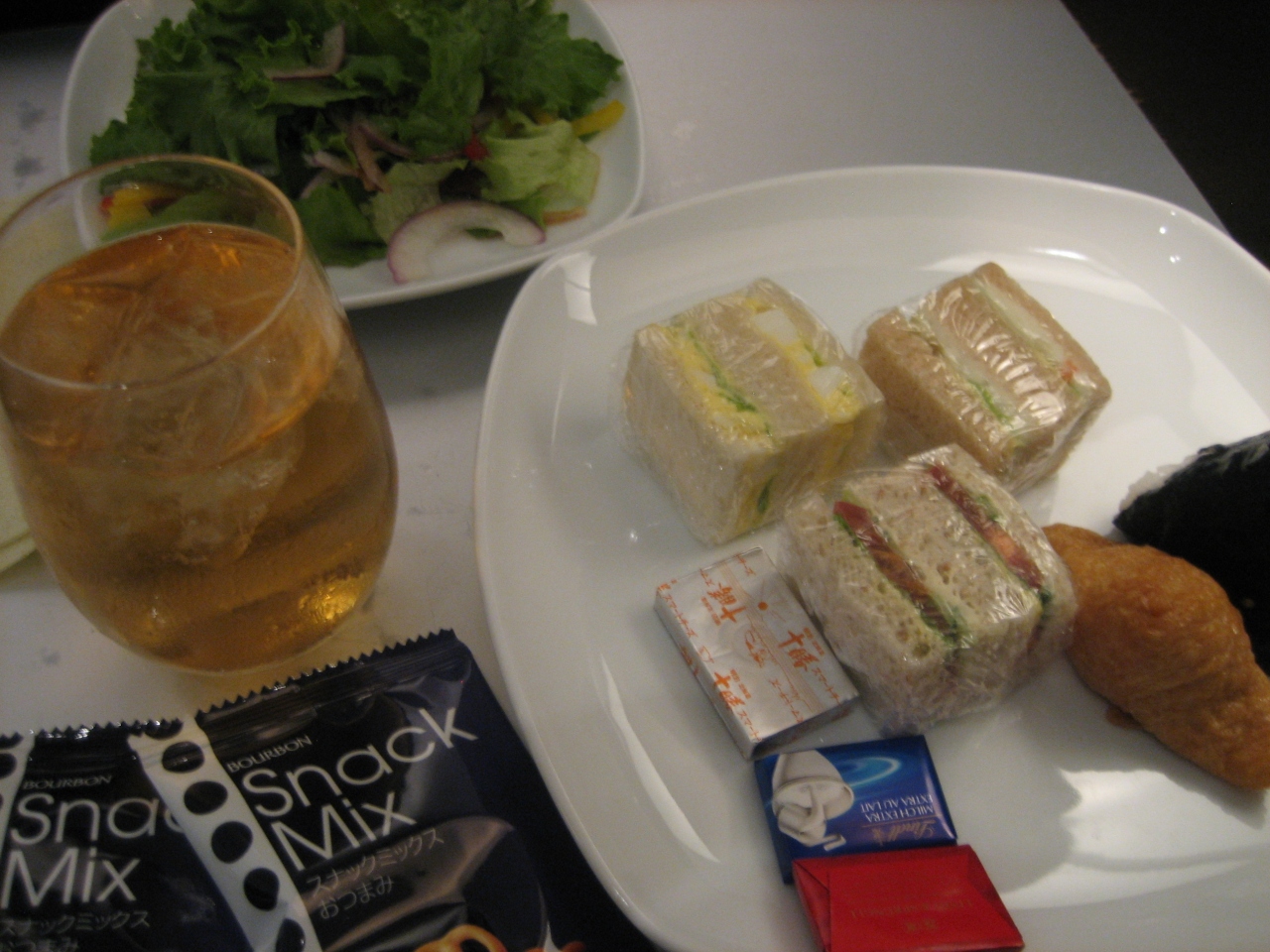ビジネスクラスのラウンジはUAかANAラウンジを利用できるが、以前よりもANAラウンジの軽食はさらにお粗末になったような気がする。ちょっとショックだったのは、バターではなく、マーガリンが置いてあったことだ。エコノミークラスの機内食でもバターは出るのに、なんでこんなところでケチっているのだろうか。それでいて酒類はけっこう豪華だった。このアンバランスさが不思議である。全然ANAらしくない。(機内食の和食はおそらく世界一の評価なので)