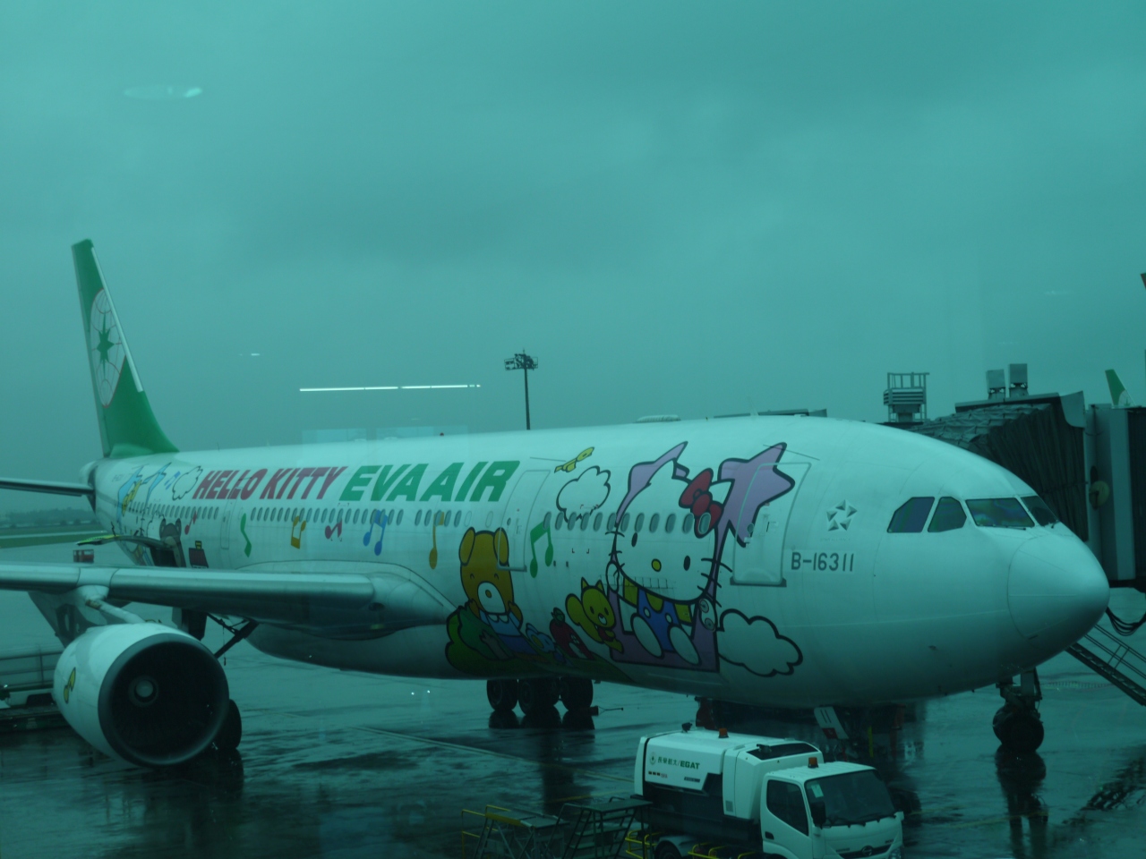往路はキティちゃんのペイントの機体ではなかったのですが、機内はクッション等キティちゃんで、テンションあがりまくり。