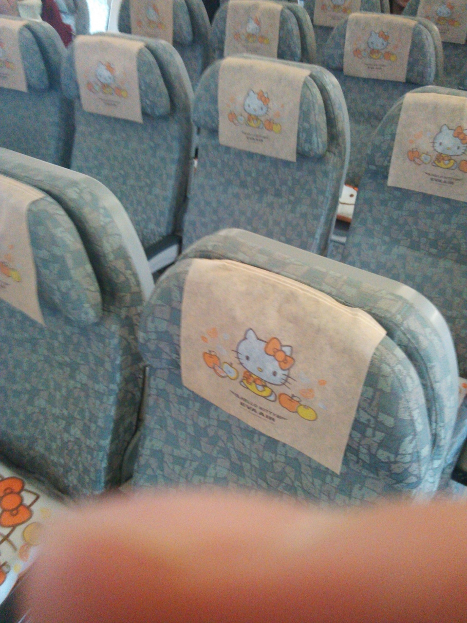 ヘッドカバーと席に備え付けている枕はキティ仕様でした。