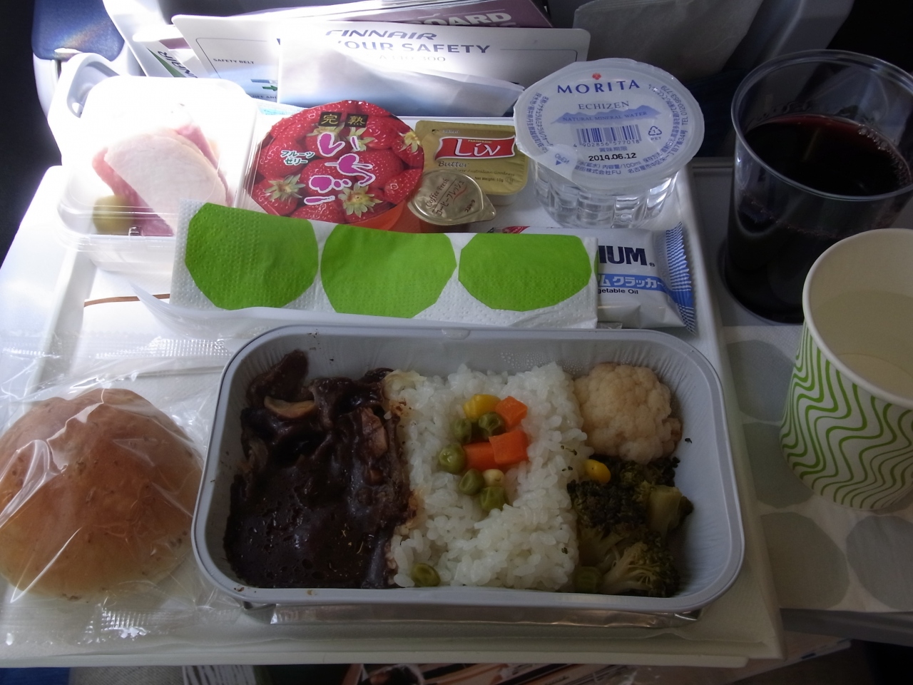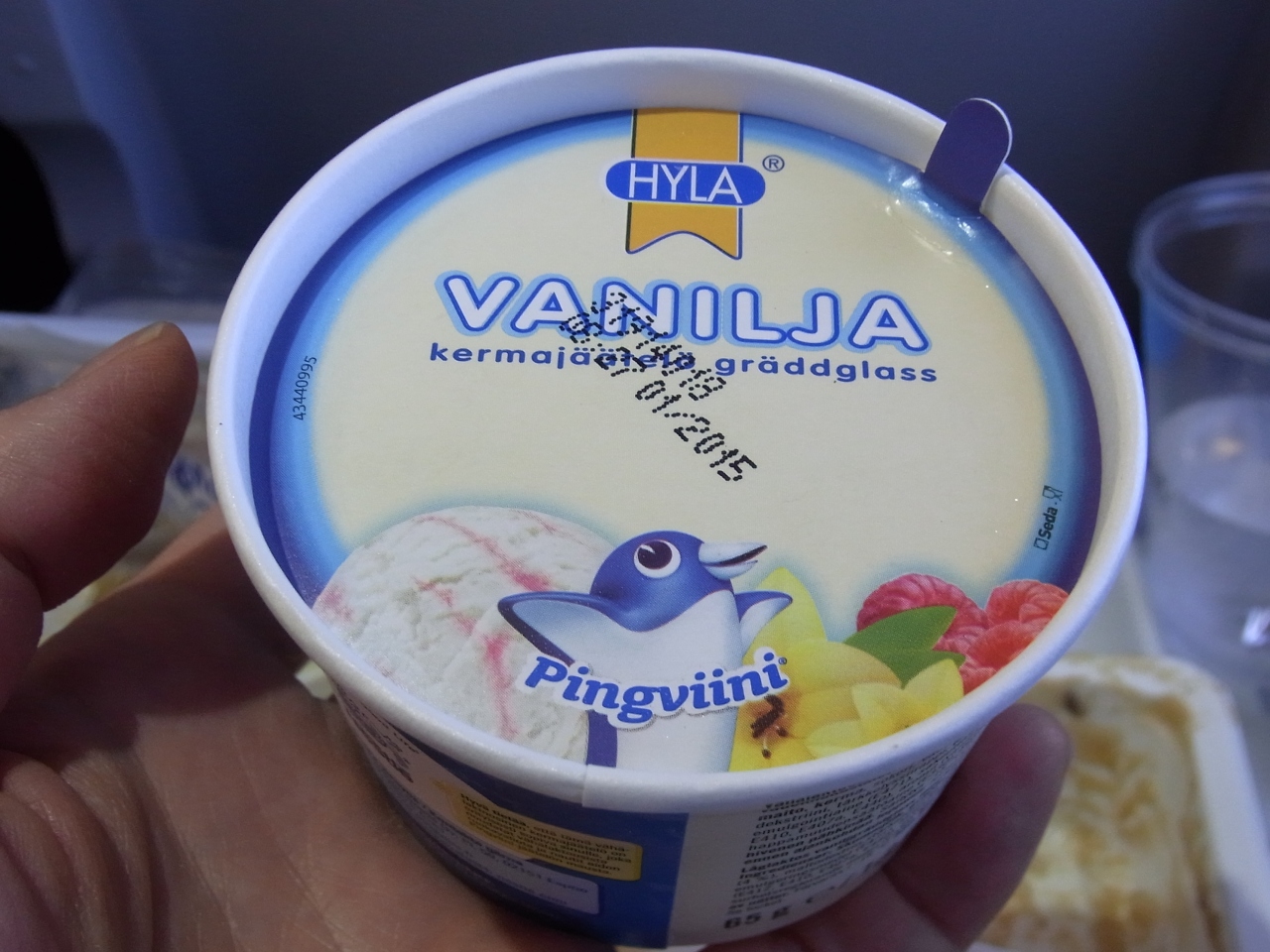 お楽しみな機内食は以前搭乗したときに比べかなり簡素になっていてちょっぴり寂しかったです。エコノミーなので仕方ないですが、帰国便にはサラダ類がなく、デザートもオリジナルではなく、カットフルーツと既製品アイスクリーム(プレミアムブランドではない)で、バターではなくマーガリンでした。その寂しさをカバーするのが、マリメッコデザインの紙ナプキンや紙コップ。フィンランドそのものの色使いに胸きゅん。機内販売には、同デザインのエプロン、陶器のティーポット&カップがありましたが、どちらかというと私はこの紙コップや紙ナプキンの販売をして欲しいですね☆ 紙ナプキンは未使用にして持ち帰りました(笑)。
