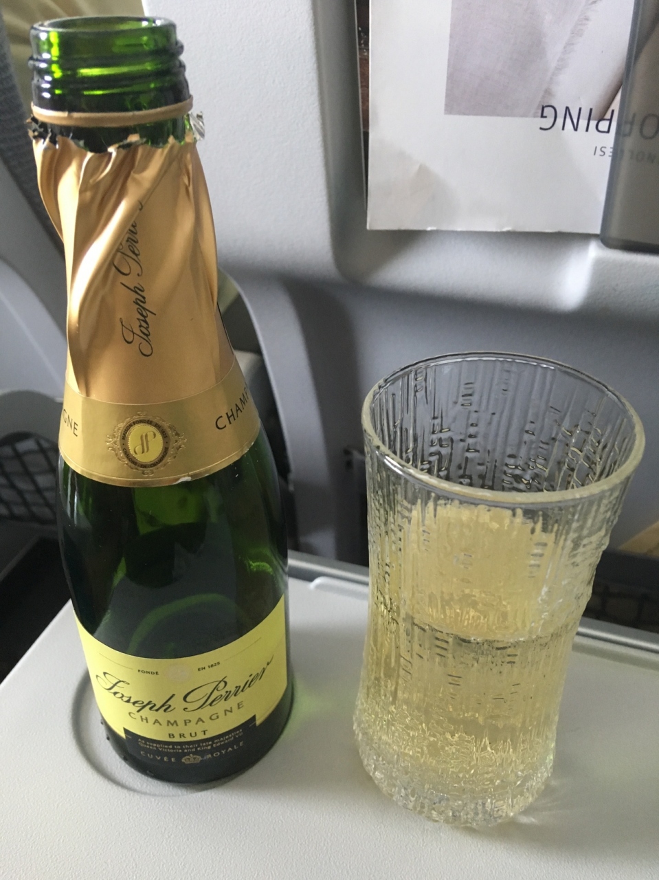 成田への帰路前のEU圏内、ミラノ→ヘルシンキ間のエコノミー席はコーヒーやジュースだけのサービスでしたが、OWエメラルド会員とその同行者にはお好きなドリンクをどうぞというサービスがありシャンパンとビールをいただきました。イッタラのグラスでいただくシャンパンは美味しかったです。