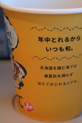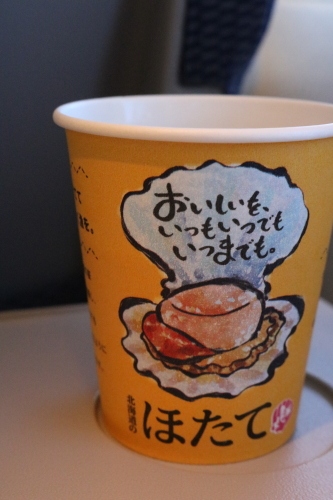毎回のことですが、ANAで予約しても便によってはエア・ドゥ となってしまいます。搭乗時にキキタキツネのポストカードがありました。以前乗った時との変化では、紙コップが変化していました。もちろん玉ねぎスープです。