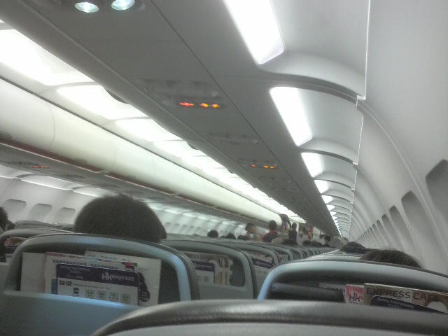 乗客は日本人は思いのほか少なく、香港の人のほか、中国各地へ(から)の乗り継ぎ客が多いようだった。