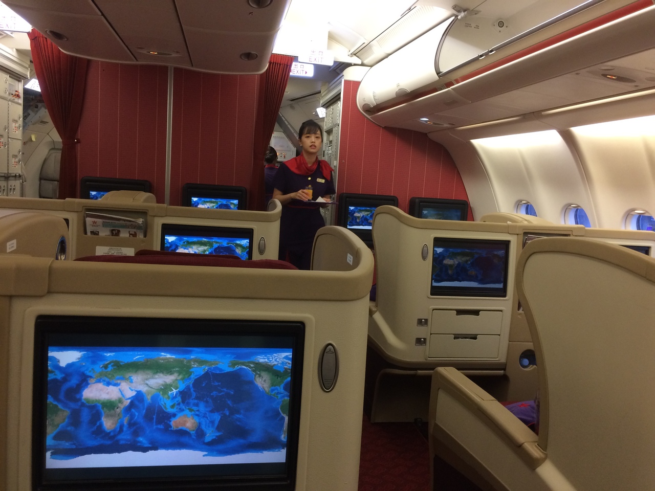 成田から香港経由でバリ島というルートを往復しました。旅行会社を通じてネット購入したところ、なぜか行きだけビジネスクラスとエコノミークラスが同じ価格。。というわけで行きはビジネスクラスを利用しました。