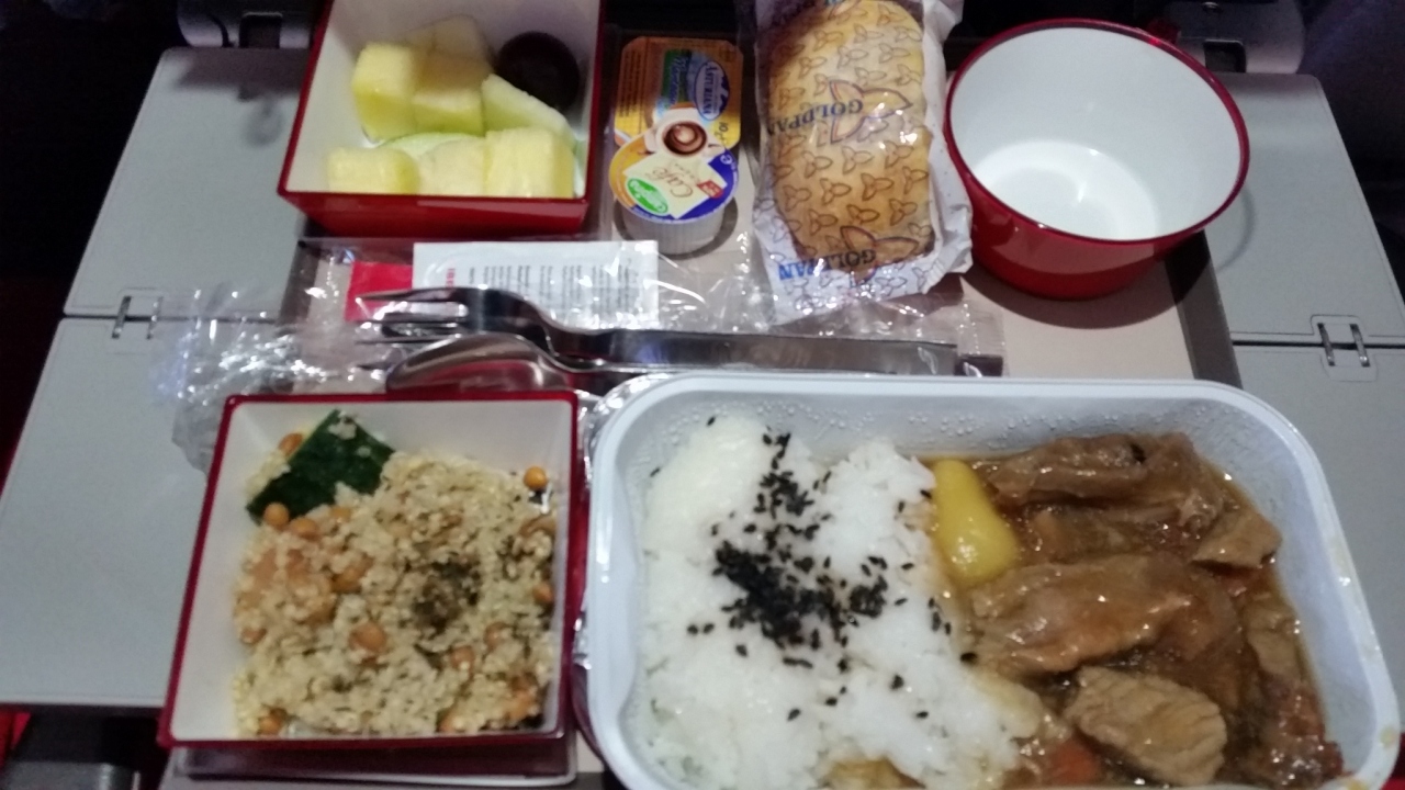 ツアーで成田~マドリッド~サンティアゴを往復利用しました。国際線では食事が2回、軽食が1回出ました。量としては普通食1回、軽食2回程度。他社より軽めです。エンタメ映画は日本語版はありますが、少な目。CAは日本人もいて、日本語放送もありました。国内便は飲み物食べ物すべて有料。テレビなしです。