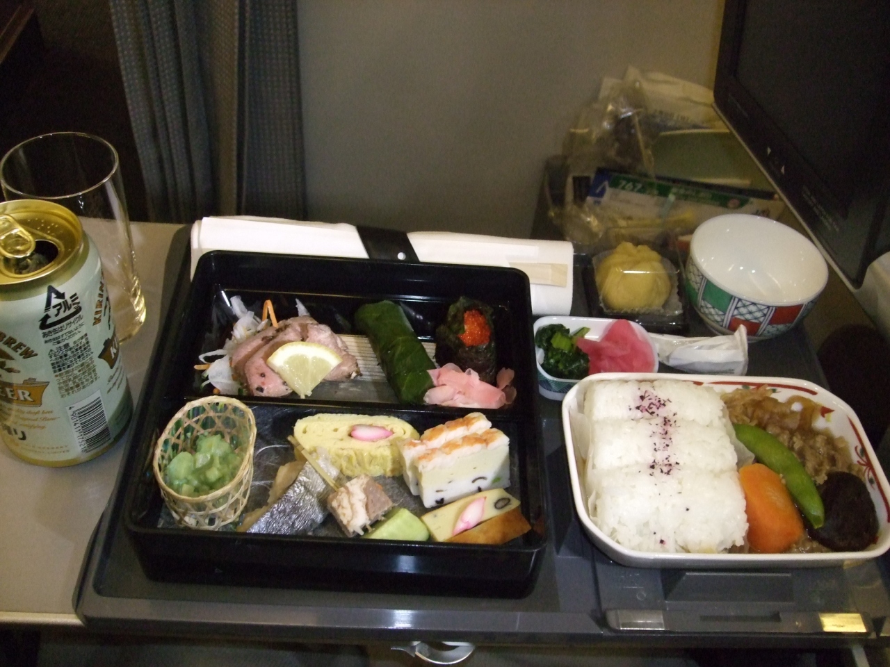 「本日は後方座席に空席が多くございますので、広い三列席で横になっていただいても構いません。今からでもお移りになられますか?」と、提案を頂いた。我々は既に着席して出発に備えていたので、体調次第で移らせてもらう旨を丁寧に返答すると、「何かございましたらすぐに私どもをおよびください。」と丁寧にお辞儀をされた。この時我々は、日系は流石だな、と感心した