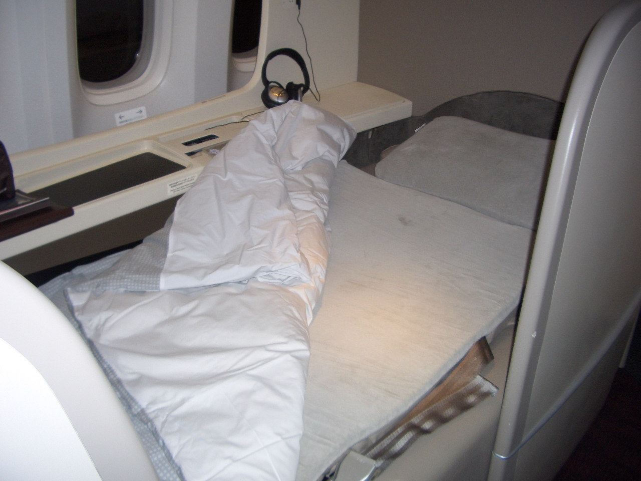今回初めて特典航空券でJALのファーストクラスを利用しました。ラウンジにも行きましたが残念ながら緊張の余り堪能できませんでした。エコノミーでも素晴らしいサービスのJAL、もちろん始終しっかりと教育の行き届いたサービスで本当に気持ちのいいフライトでした。元々機内食はあまり食べないので軽いもの(雑炊やサラダ等)を食べたい時間に作って頂きました。パジャマも用意されており寝る時に着ましたが、それを持って旅行するのは荷物を出来るだけ軽くしたい庶民としては邪魔ではありましたが、もうこんな事は二度とないと往復分お持ち帰りさせて頂きました。