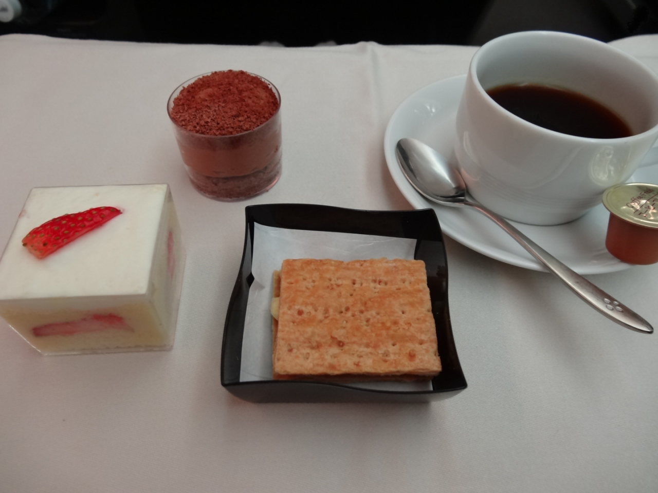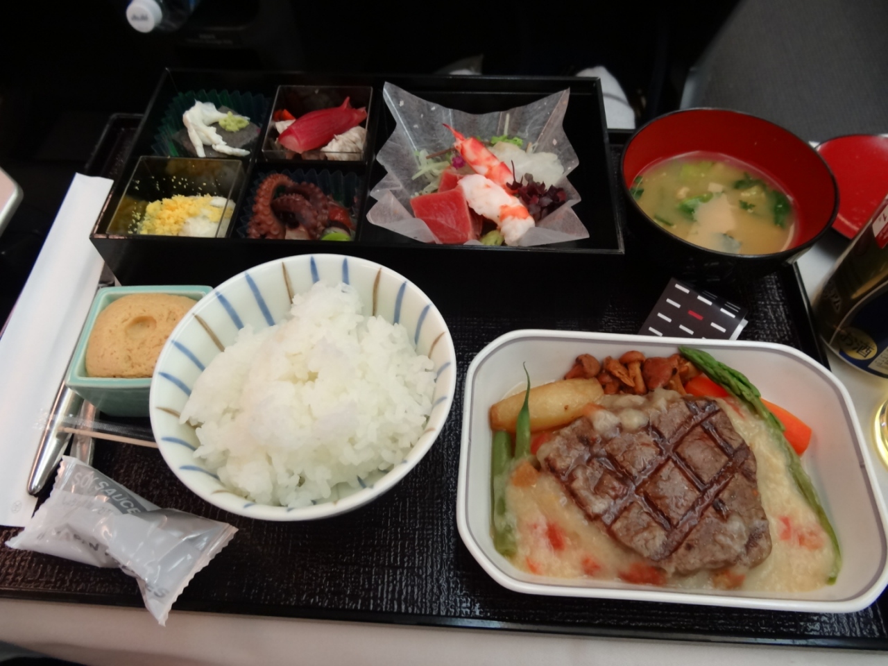 もちろん機内食のレベルの中で、というお話ではあるもののステーキは機内食用の丸っとしたナイフでもすんなり切れる柔らかさで美味しかったと思います。