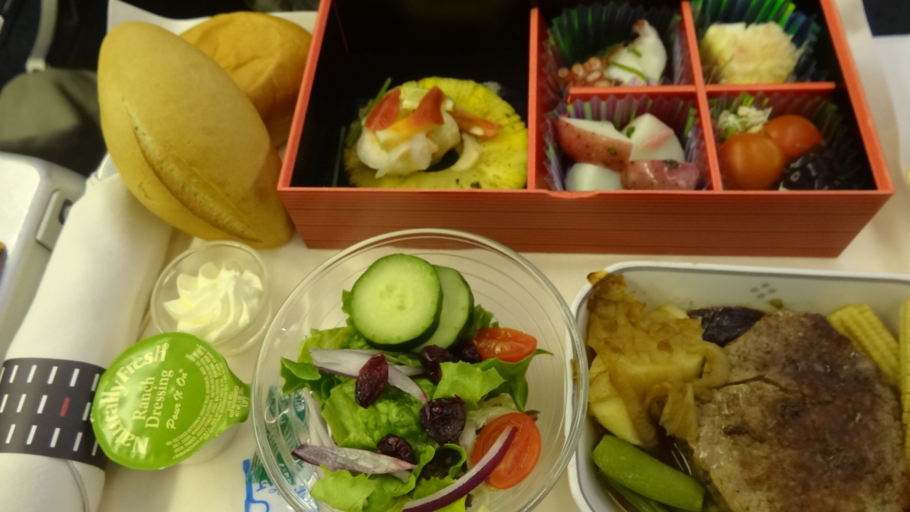 以前ハワイアンのビジネス乗った時は食えたもんじゃなかった…。