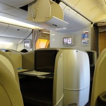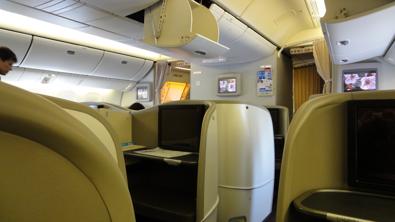 B777−300ERファーストクラス。ビジネスからのアップグレードで利用。この時は最新のスウィートではありませんでしたが、設備は特に問題なし。機内食は洋食を選びましたが、最近は以前よりよくなっていると思います。