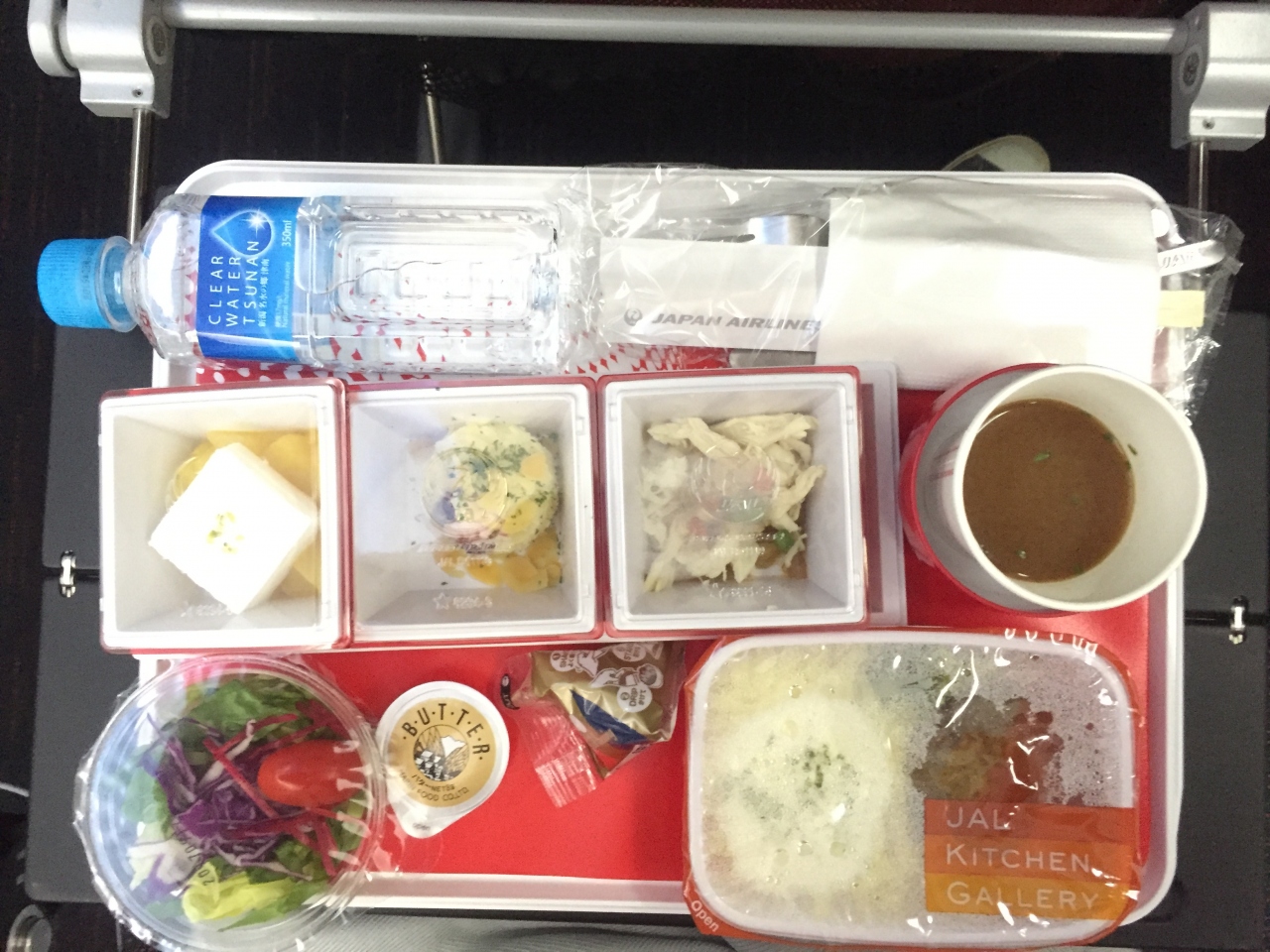 機内食は(確か)30歳以下の若い料理人のコンテストで優秀だった4、5名が作ったというメニューで、サラダもメイン(ハンバーグかエビチリで、私はハンバーグを選択)もデザートも全部おいしかった。お味噌汁ありなのもうれしいです。特に帰国便は。