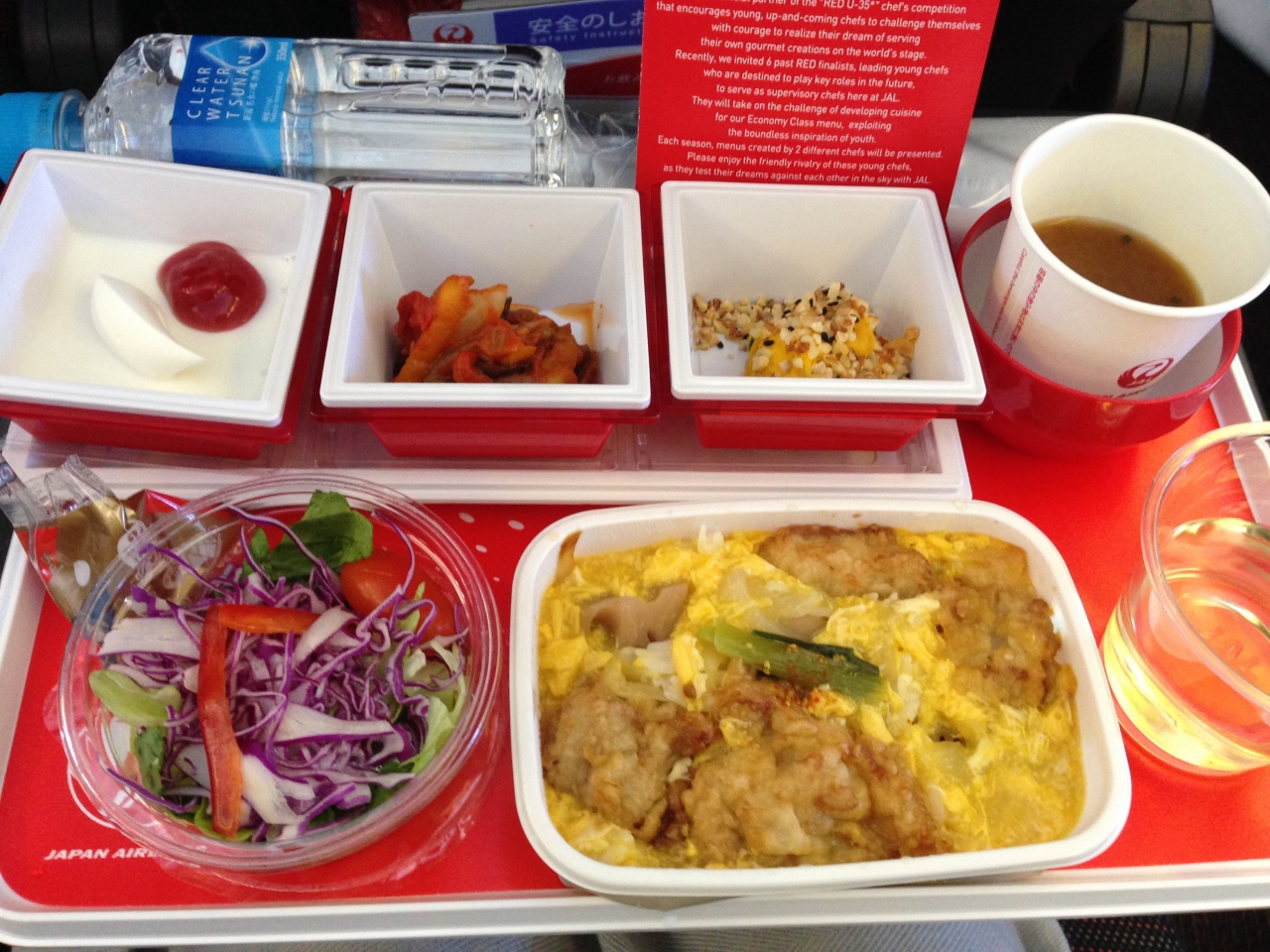 どうやら若手料理人がつくったものだそうで、唐揚げのたまご丼とトリュフの香りのまぜそばだったが、どれもレストランで食べているようで機内食の域を超えおいしかった。ジントニックがあるものうれしい。