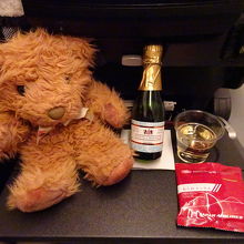 飲物サービスには,スパークリングワインの小瓶も提供されますが,味はイマイチでした。
