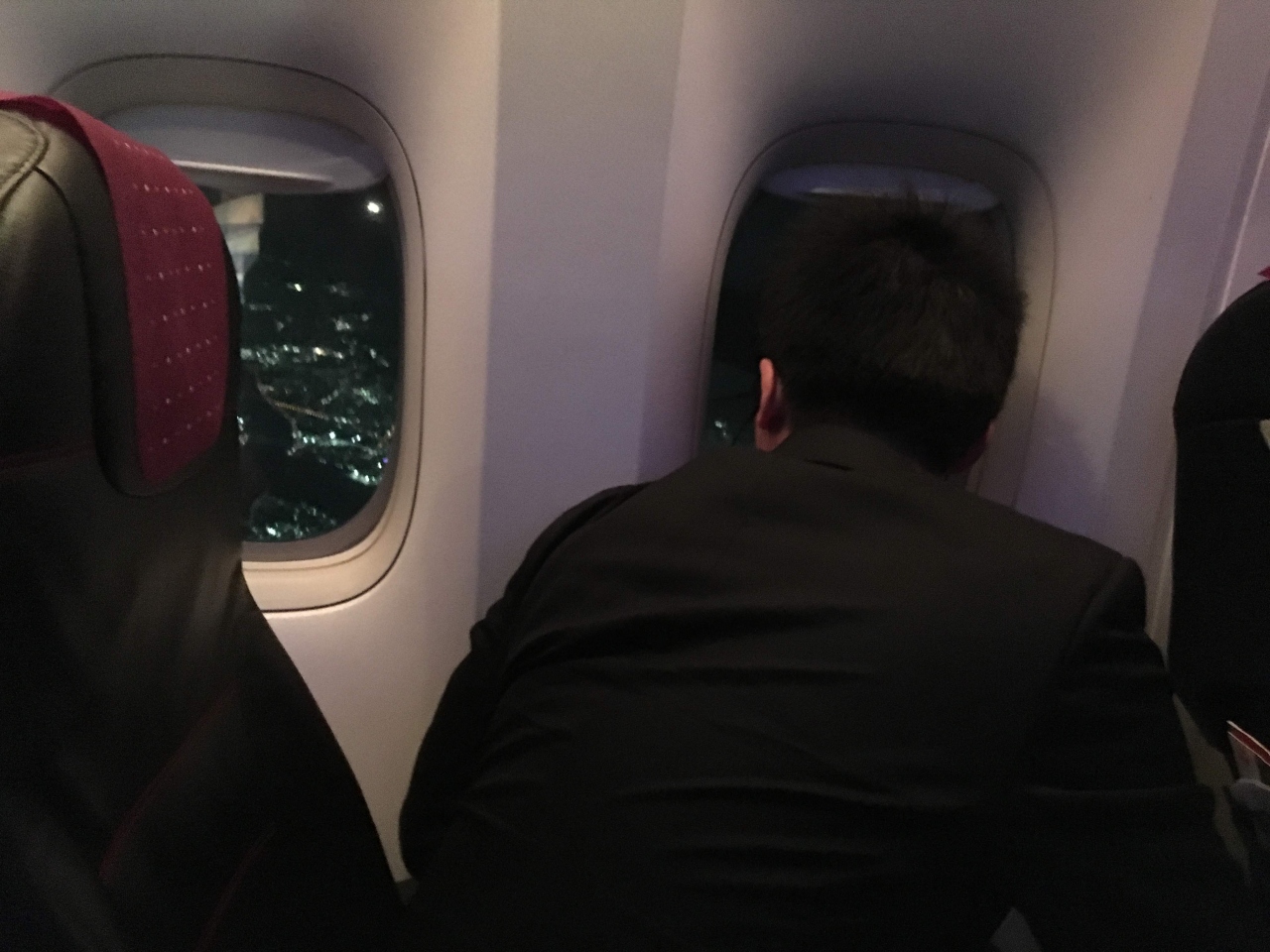 国内線も国際線も運航している日本航空。東京行きの最終便だけあって、かなり満員御礼なフライトでした。この伊丹発の夜便は夜景がすばらしい。友人もへーといいながら釘付けになっていました。短いフライトなのにしっかりドリンクサービスも手抜きなし。さすがです。