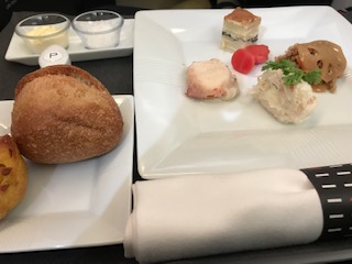 機内食(洋食)は、前菜からメインまで全て美味しかったです。連れの頼んだ和食も美味しかったとのことです。