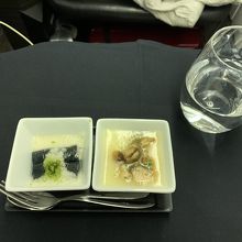 前回乗ったときは和食の味付けが好みに合わず、美味しくありませんでしたが、取りあえず、少しの間はちゃんとした和食が食べられないと思い、和食をリクエストしておきました、シェフは同じ方でしたが、今回はとても美味しかったです、