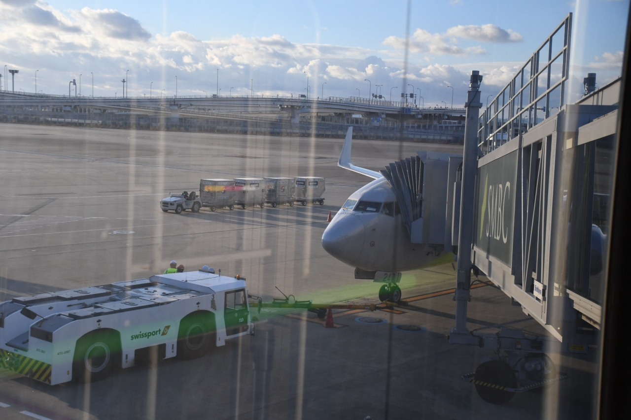 関西空港から釜山まで、飛行時間は二時間弱、国内線並みです。十二月二十四ひ出発というのも、一年で需要が多い日を選んだのかもしれません。近距離の割りには、燃油加算金が一万円以上かかりました。食事は勿論、水一杯も供されません。
