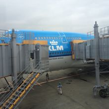 客室乗務員の制服はきれいなブルーで引き立つカラーでした。