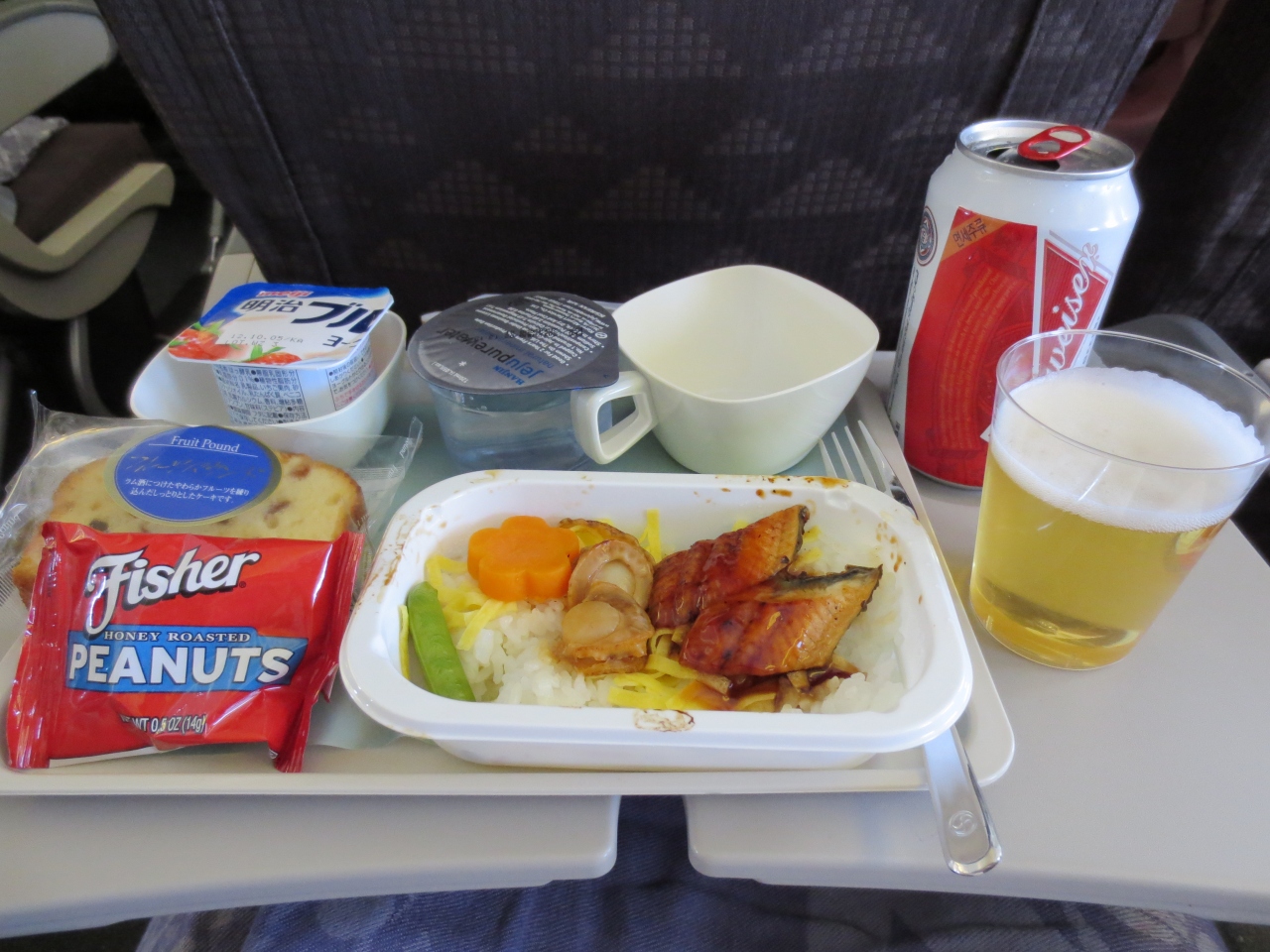 機内食が特に美味しいわけではないですが、オレンジジュースは美味しいと思います。