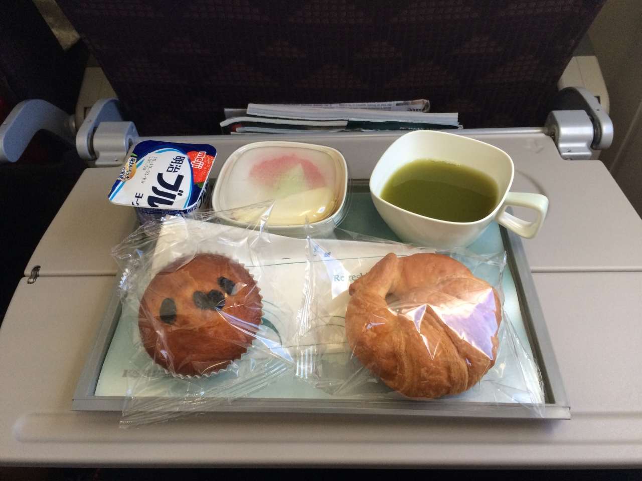 途中軽食がでました。パンが2つとフルーツとヨーグルト。朝早い便だったので良かったです。お味もまずまず。