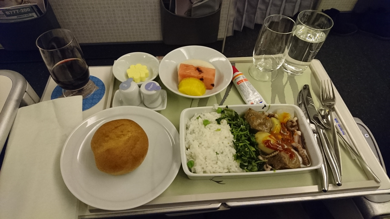 キャビンアテンダントさんのサービスもよく快適に過ごせました。食事もそこそこ美味しいです。ただ2時間しかフライト時間がないため、食事して寝ようとすると10分後ぐらいにすぐ起こされます。あまりゆっくりとフライトを楽しむという感じにはなれませんでした。