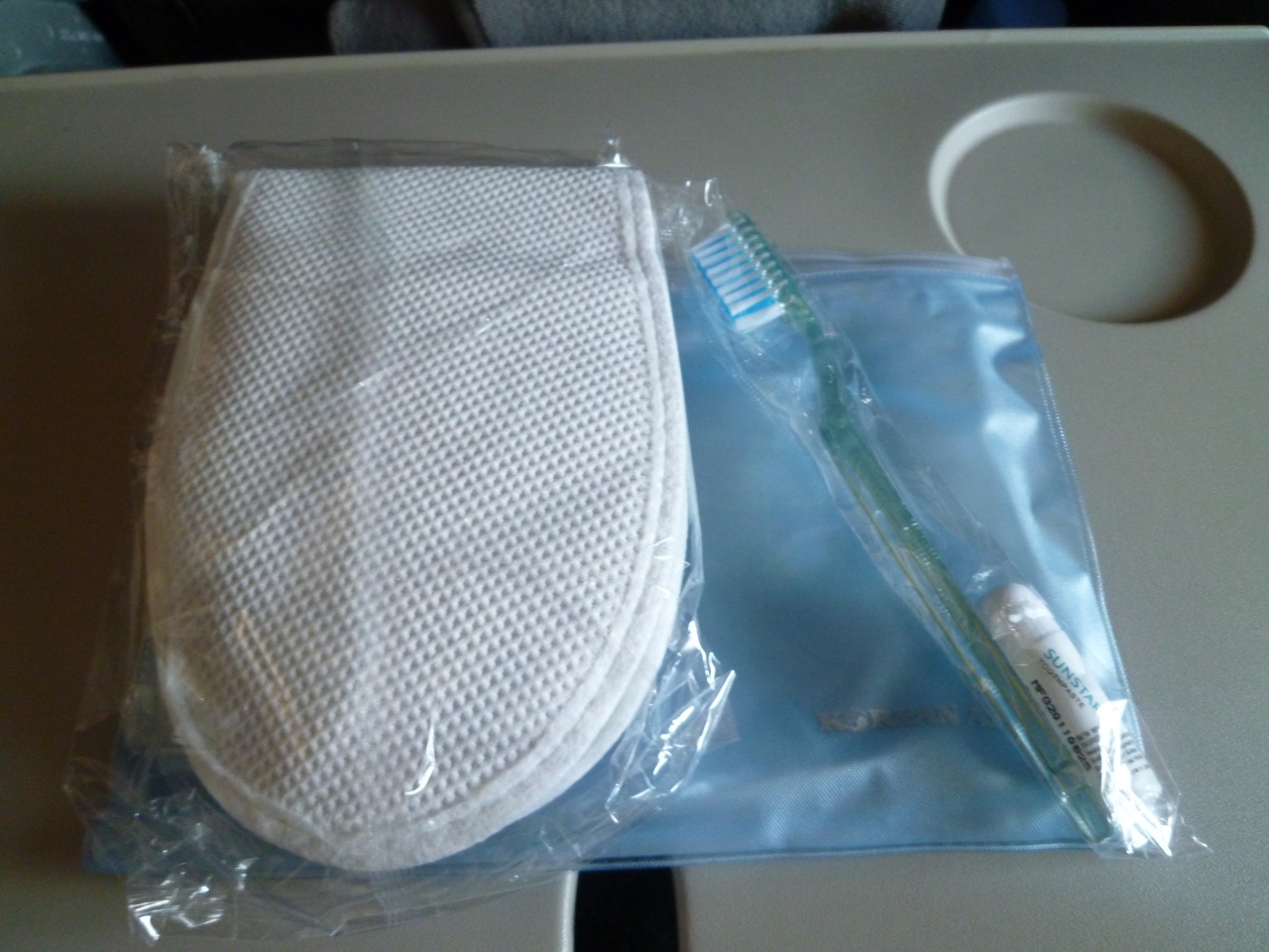 エコノミーでも使い捨てスリッパとハブラシのアメニティが配られました。