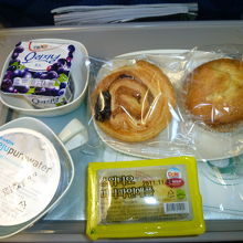 菓子パン2つ、パイナップル、ヨーグルト
