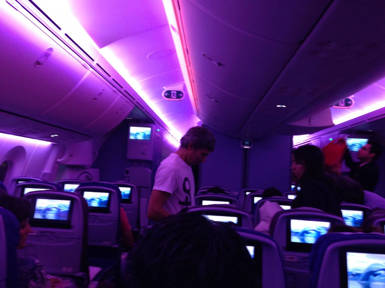 ニューヨークからサンティアゴまでの深夜便で利用しました。機材は最新の787型機。往路は直行だったが復路はリマを経由して、そこで客がガラリと入れ替わりました。エンターテイメントはタッチパネル式の最新のものだったが、USBで充電のために接続していたIphoneの何かと反応するのかCAさんの呼び出しボタンがやたらと作動する始末。