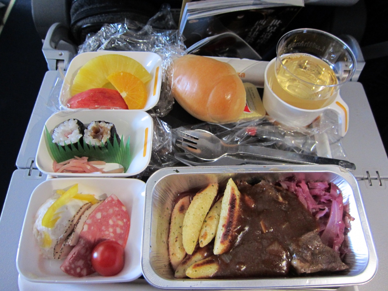 ボトルワインをコップについでくれますが美味しかったです。食事の後にもボトルを持って回ってくれるのでお代わりをしました。成田空港には2時間前に行きましたが、チックインカウンターにはほとんど人はいなかったのですぐに手続きをしてくれました。