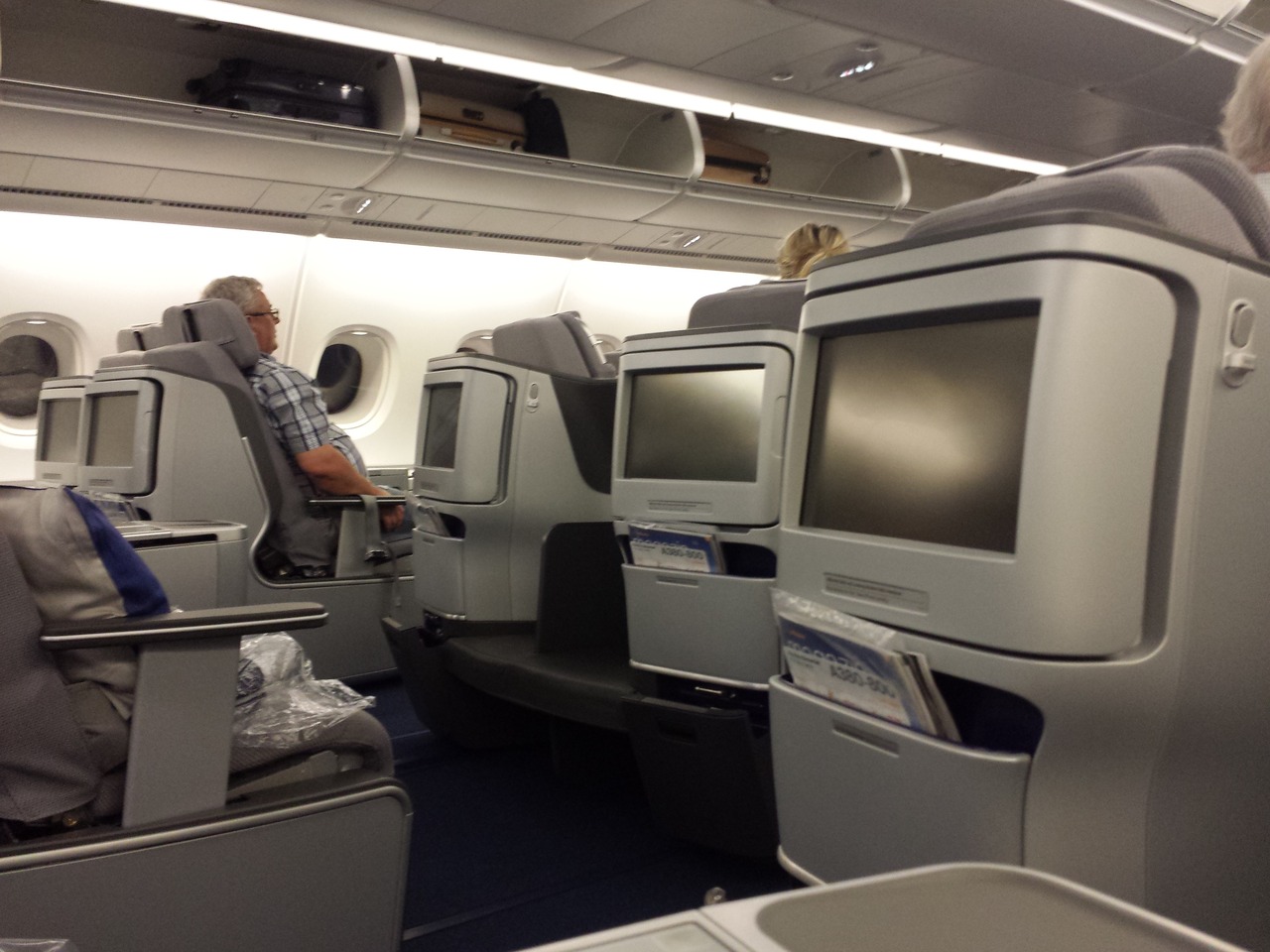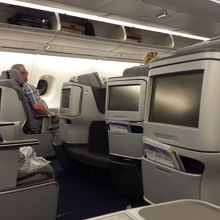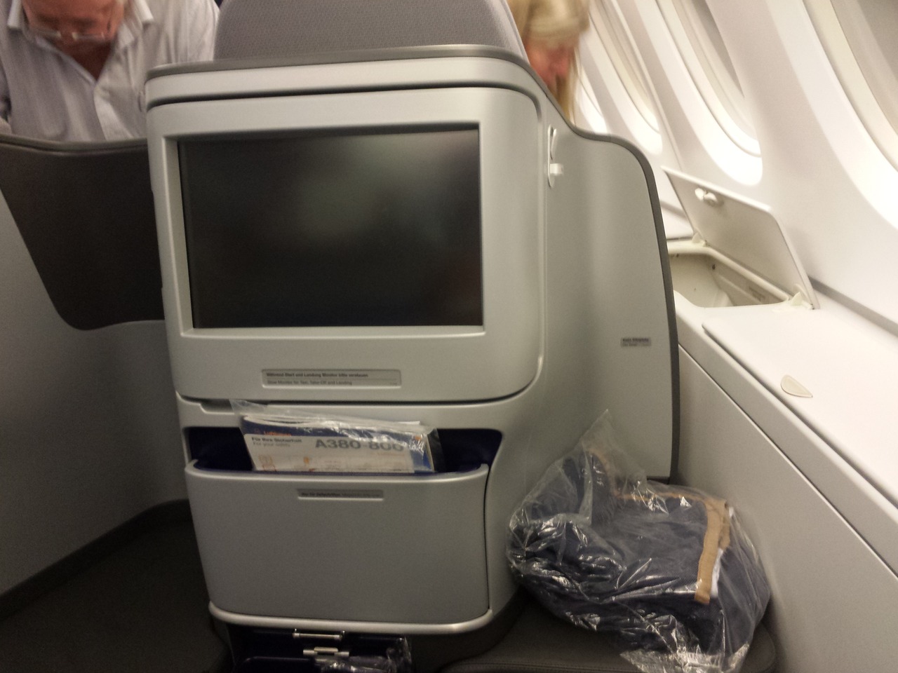シンガポールからフランクフルトまでA380に搭乗しました。機体が大きいのに足元が狭くてガッカリです。同じA380でもシンガポール航空のCクラスは広いのに!つま先のところが三角になっていて寝返りが辛い。SQ便にすれば良かったと後悔!Lufthansaは欧州内でもCクラスは真ん中のシートをテーブルにしてるだけだし。