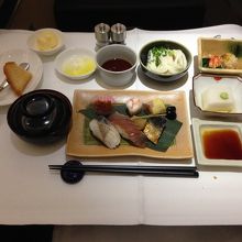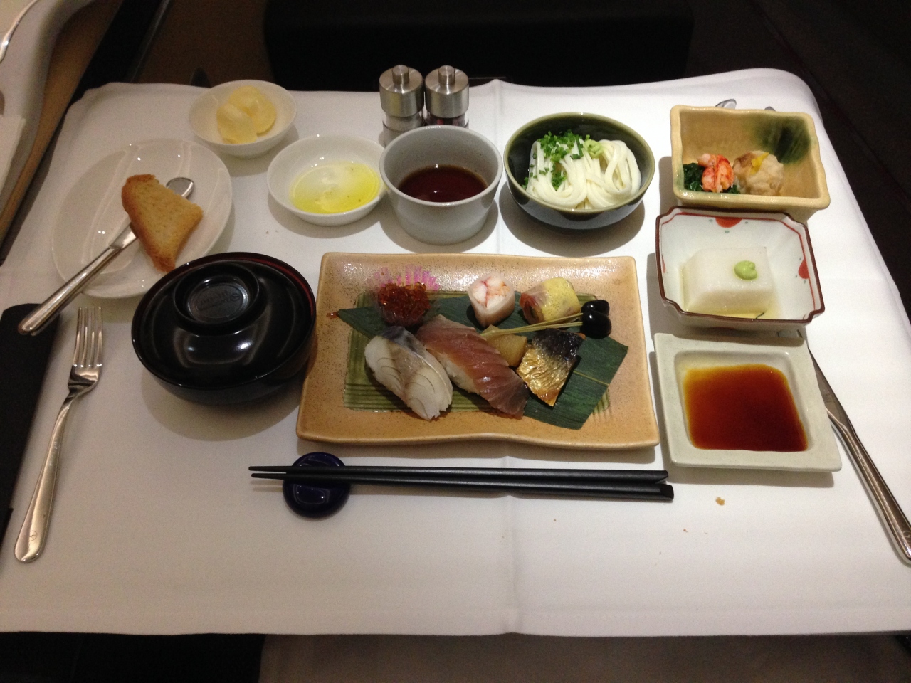 機内食は、日本人にはかなり量が多いので食べ過ぎ注意です。飲みものは、シャンパン、ワイン、日本酒、ドイツビールなど多種あり十分に楽しむことができます。