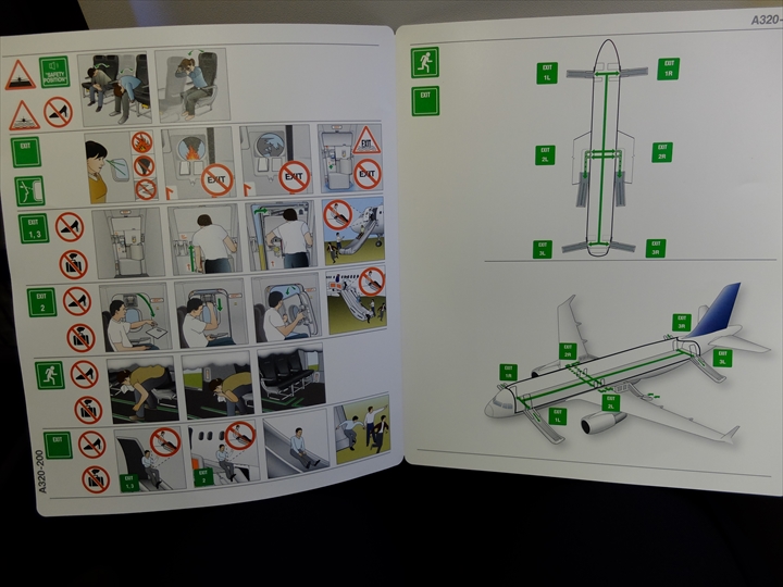 往きの使用機材はA320‐200で、エコノミーの座席は3‐3で個別スクリーンは無し。(帰りはA321-100/-200)
