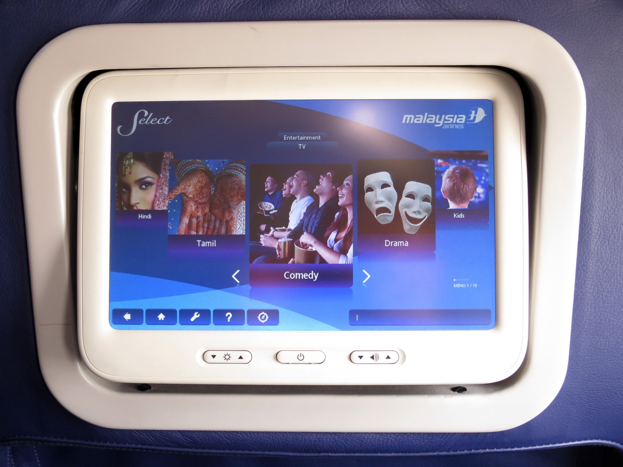 - 国際線仕様の機材ですからプログラムも国際線用、多民族国家らしくタミル人やヒンドゥー教徒向けチャンネルもあったりで勉強になります