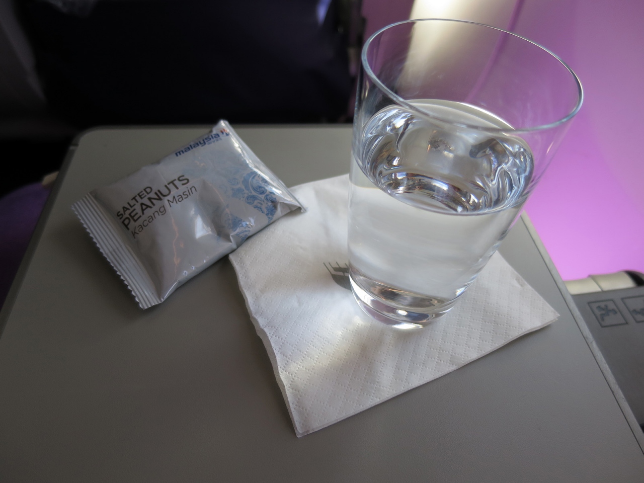 マレーシアで国内線フライトを利用するのは、今回のクアラルンプール/コタキナバル線が初めてでした。KLIA内の立派なマレーシア航空国内線用ゴールデンラウンジで軽く食事を済ませてからの搭乗です。機材はB737-800、日本国内線でもお馴染みの中型機で、シートピッチは広くありませんし、リクライニング確度も浅いのですが、まあ2時間半程のフライトですし、使用機材は短・中距離国際線と同じ仕様で、機内はとても綺麗な上に、皮張りシートがなかなか優雅でした。食事はビジネスクラスらしい豪華さはありませんが、味は悪くはなかったですし、シートテレビのエンターテイメント・プログラムにはタミル人やヒンドゥー教徒用チャンネルもあったりで、さすが多民族国家マレーシアを肌で感じられました。明るく元気なCAさんのサービスも嬉しいものでしたし、何と言っても安価でビジネスクラスが楽しめることが良かったです。おっと、書き忘れましたが、マレーシア国内線ではアルコール類の用意はありませんから要注意ですよ。