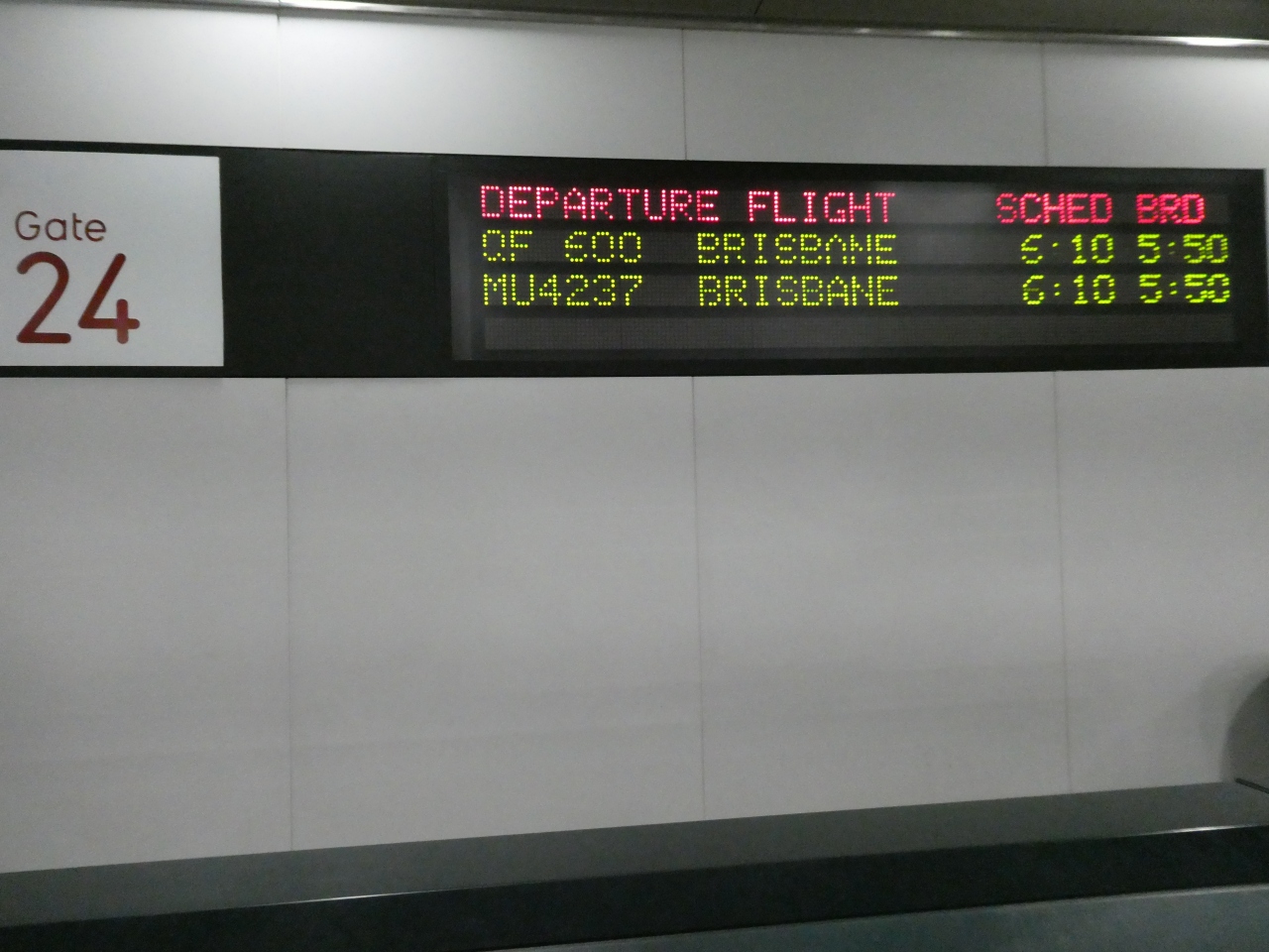 利用フライトはQF600便・メルボルン(06:10発~ヴィクトリア州時間)⇒ブリスベン(07:20着~クィーンズランド州時間)のフライトタイム2時間10分の早朝始発便です。