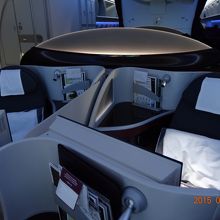 B787のビジネスクラスを利用しました。流石最新機種で快適でした。ただ日本語対応のエンターティメント(映画)が少なくて残念でした。1−2−1の並びで2人旅だと中央席を選んでしまいますが、この便は、窓側席と中央席がほぼ平行に並んでいる為、窓側ー中央席というチョイスもあります。