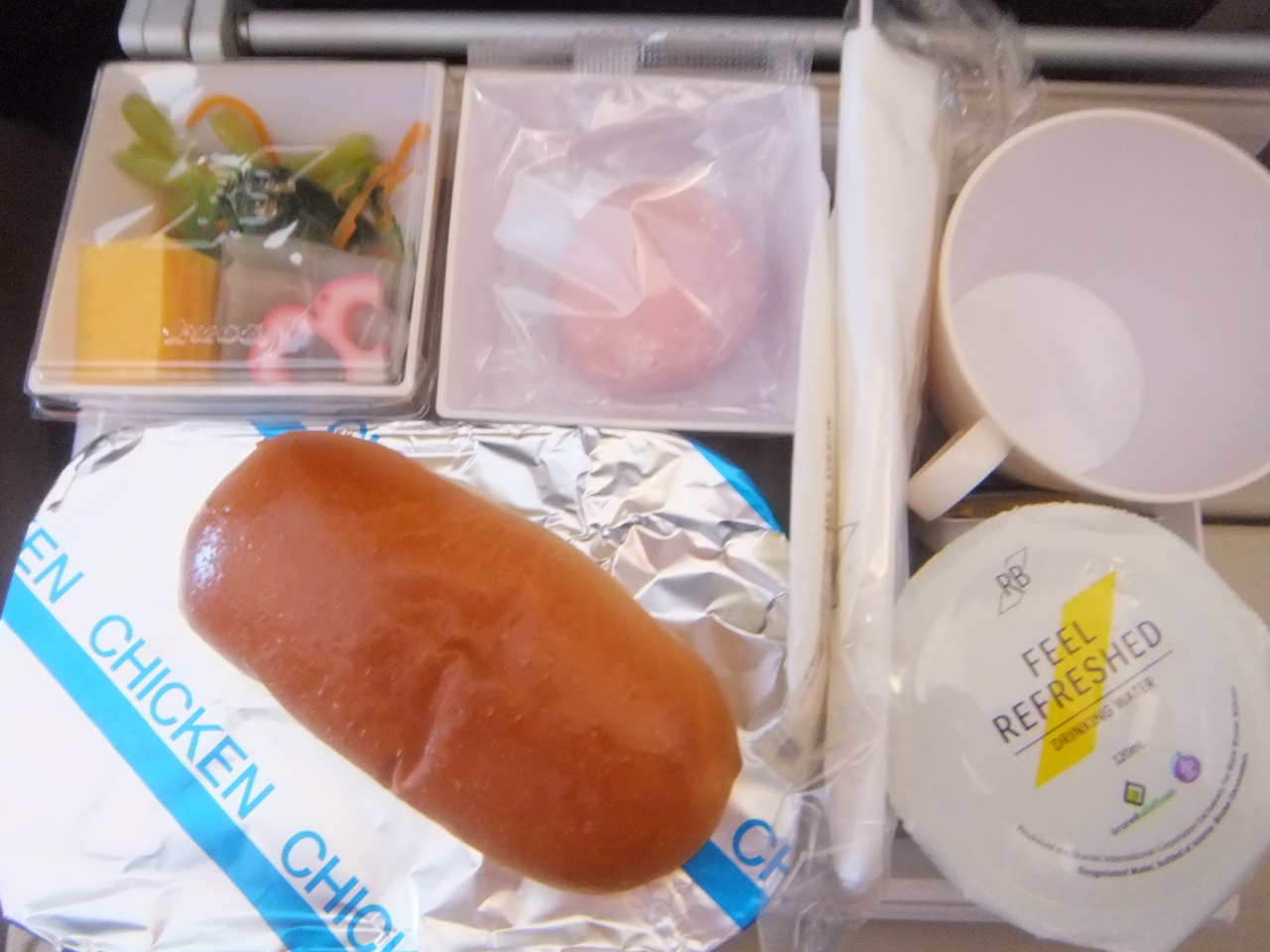私は機内食はあまり食べられないのですが、あたたかいパンが美味しかったです。