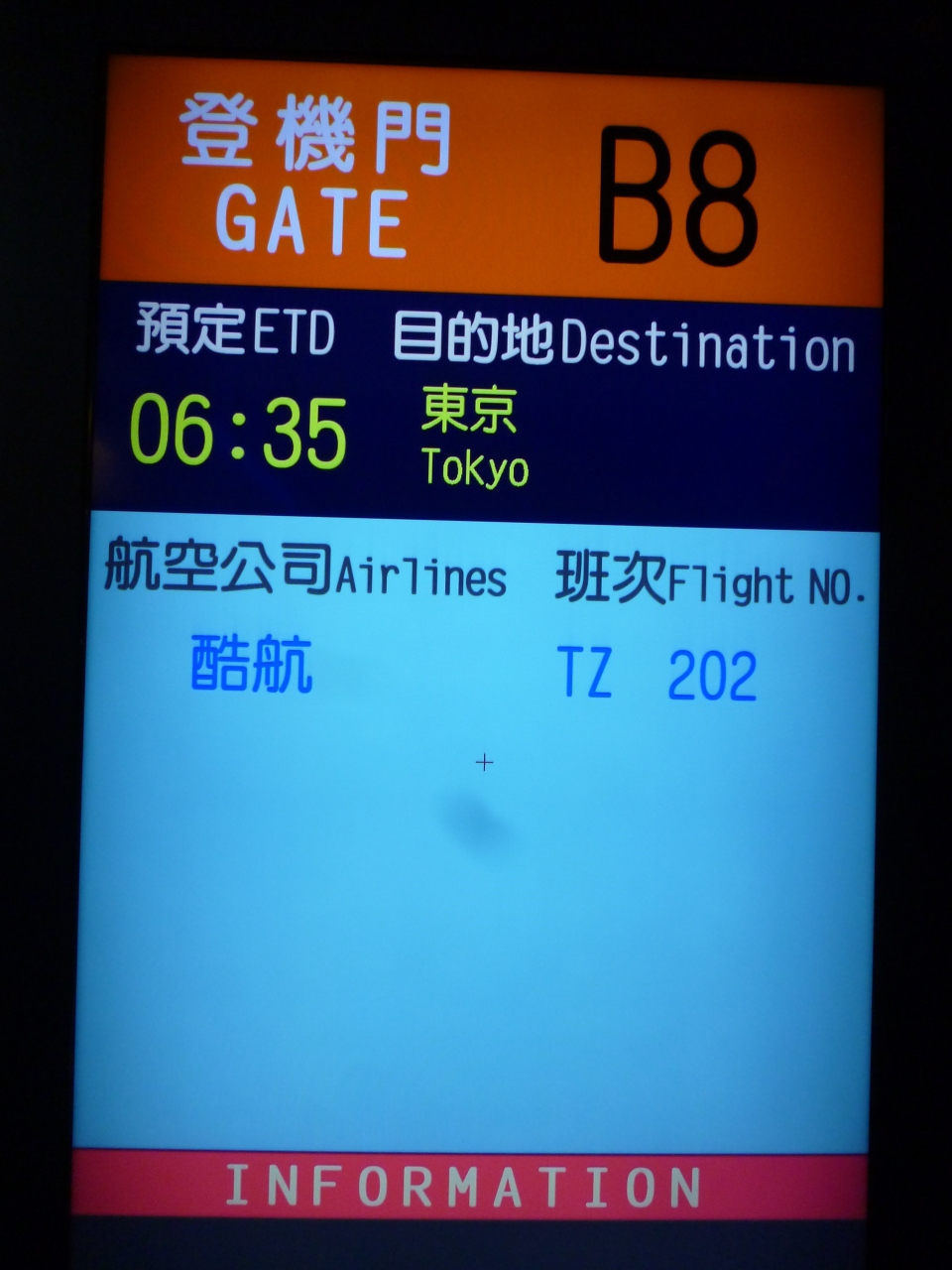 参考までに、前回は6:50発であったので、4:00松山空港・4:35行天宮始発の建明客運で第1タ-ミナル5:15着(実際は第2で必死に第1に移動)。利用はしなかったが、もう一つの方法は、台北西駅始発4:30の国光客運で第1タ-ミナル5:20着(建明バスの直ぐ後に到着しました)。今回は、15分出発が早まったことと、第1タ-ミナルバス停(1F)からLCCカウンタ−(2F)までは、空港のはじからはじなので(約5分)かなり危険です(LCCは出発の1時間前で必ず締め切るようです)。
