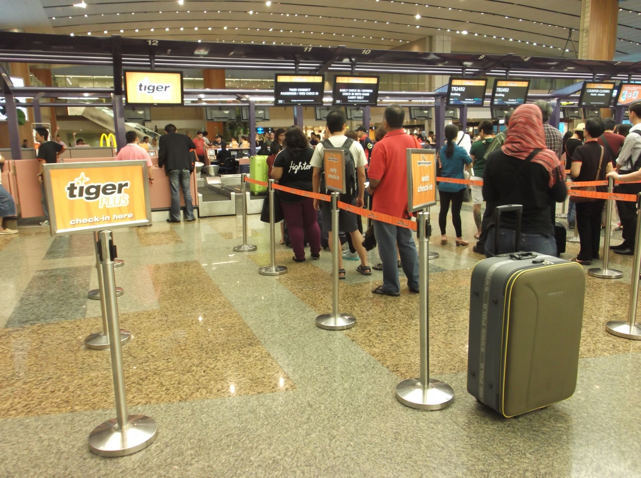 チャンギ空港第2ターミナルのチェックインカウンターは激混み。