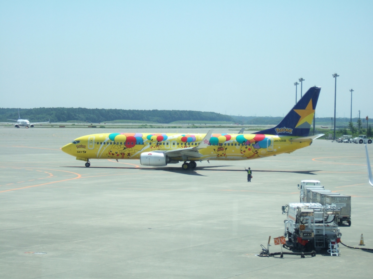 ちょうどピカチュウジェットに乗ることができ、機体だけではなく、ヘッドレストのカバーや紙コップまでピカチュウが描かれていて、ちょっと楽しい機内になっていました。子供は喜びそうです。