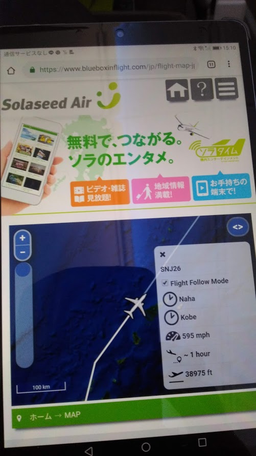 宮崎など九州路線がメインのソラシドエア、関西では神戸―沖縄線を運航して、お手軽値段で提供しています。ちょうどよい時間だったので選びました。