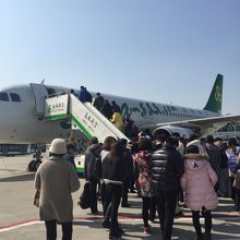 席は狭めですが上海までは約3時間ぐらいなので問題なし。