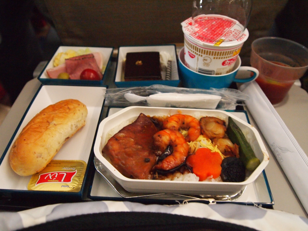 行きの機内食は美味しく、リクエストすればカップヌードルも出してくれ