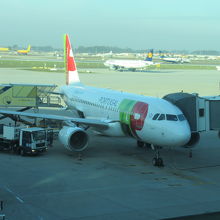 ポルト10時発予定の飛行機が40分遅れで飛び立ちました。座席は思ったよりゆったりしていて、途中お水とお菓子が配られました。飛行予定時間は1時間でしたが、放送がないので詳しいことはわからないが全然着陸しないので、乗客がだんだんいらだってきました。結局着陸は12:15で飛行機を降りたのは12:35でした。結構乗り継ぎに余裕があったのにギリギリになりリスボンの空港を走って走って何とか間に合いました。